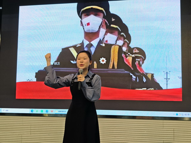 比赛现场气氛热烈,座无虚席。选手们轮番登场,各展风采。他们精心选取各种题材的经典作品,从气势磅礴的爱国诗篇到细腻入微的散文佳作,从激昂向上的现代诗歌到韵味悠长的古典诗词,丰富多样的内容展现了选手们的文化积累和对祖国的强烈热爱。其中,23学2韩诗语的《那支钢笔》书写属于父辈的青春记忆,笔尖划过纸面的沙沙声,诉说着传承的力量。24学2曾梓灵的《中华诵》朗诵气势磅礴,展现出中华民族源远流长的文化底蕴和坚韧不拔的民族精神。23学1李子欣的《匆匆》朗诵则如同一首优美的抒情诗,带领观众一同思考时光的流逝与生命的真谛。